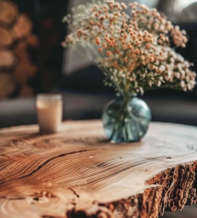 Kiekvienas stalas turi savo charakterį – natūralius kraštus, augimo žiedus, faktūrą. Tai baldai, kurie išlieka dešimtmečius ir tampa šeimos namų dalimi.